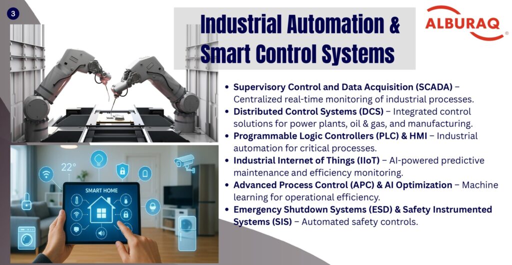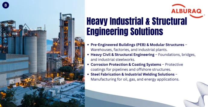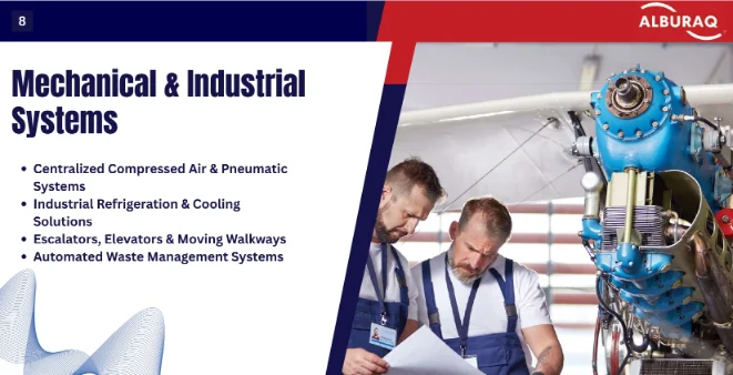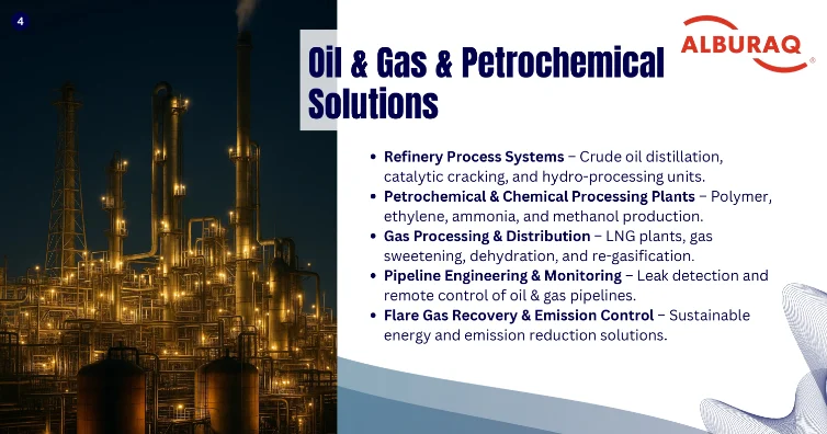 Alburaq Group is classified as an integrated Engineering, Procurement/Supply Chain, Construction, Commissioning, Systems Integration, innovative and premium industrial distributor & Services for our customer/clients. We focus our services on our two core business platforms  — Energy & Industrial Solutions and Commercial & Residential Solutions — we can confront the challenges of an increasingly complex and unpredictable marketplace from a position of strength. This allows us to drive both near- and long-term value. And retain our single-trusted-partner status with the process, industrial, commercial and residential industries.